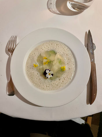 Le repas débute par un consommé de légumes d’une clarté troublante. Une mise en bouche subtile, qui donne le ton d’une cuisine du murmure, tout en équilibre.
