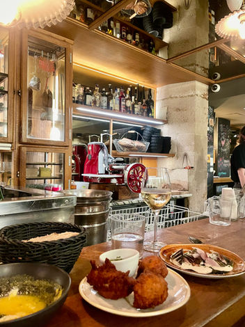 Dans ce charmant restaurant de Saint-Germain, tout est pensé pour vous plonger dans une atmosphère conviviale et décontractée. Les murs en pierre rustique, les bouquets de fleurs disposés dans de vieilles bouteilles en verre, les céramiques sur lesquelles on déguste chaque plat… et les tabourets décontractés sur lesquels on se perche, tout cela crée un cadre enivrant.