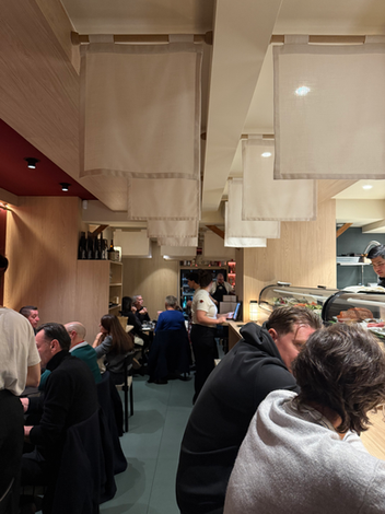 Ici, l’esprit japonais est bien présent : on vient pour l’instant, pour le plaisir non-coupable, où les assiettes circulent et où la convivialité est au centre de tout.